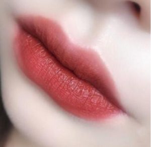 它是红色的,很显白,而且它不容易拔干。它闻起来很好,雾的质感和遮盖力都很好。唇色较深的宝宝不用担心,可以随意使用,也不过多脱色。