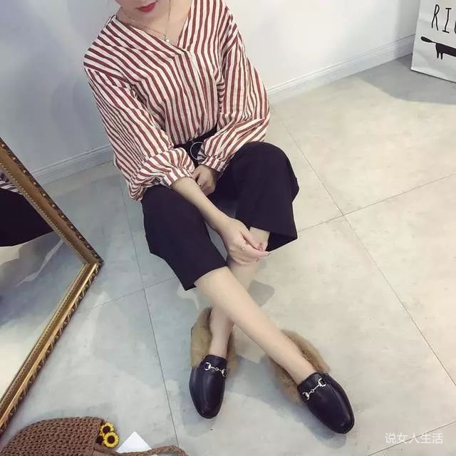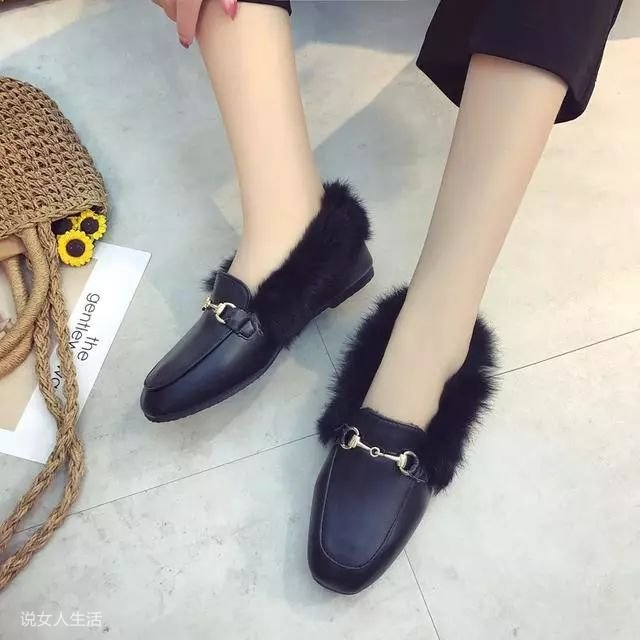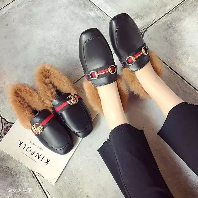 冬季女生毛毛鞋穿搭技巧:超级绒毛柔软的衬里是绒毛,圆头的设计不按脚更舒适。