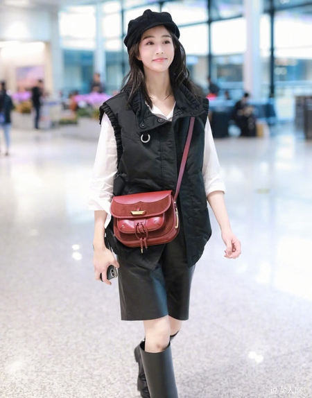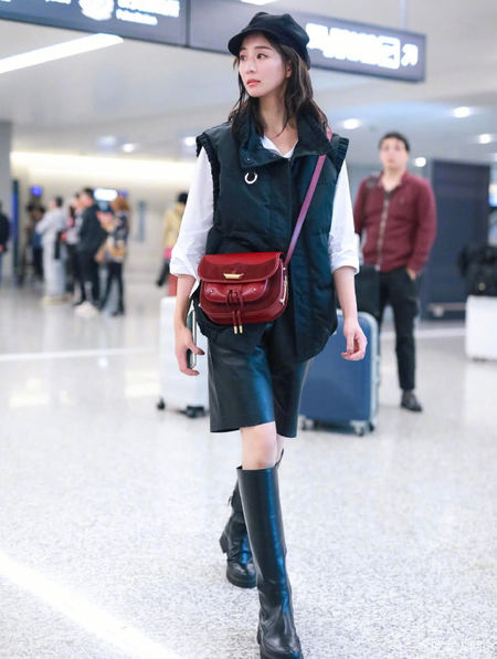 在深秋时节,长靴刚开始出現在各种各样配搭中,不但让小腿肚免遭冷风侵蚀,与之配搭还非常时尚潮流酷帅,是时尚潮流girl们非常偏爱的鞋品品类。张钧甯用电力机车长靴配搭了五分紧身皮裤,全是软皮色泽,十分和睦。并且大腿根部与小腿肚都会黑色服装之中,只是露出柔弱的膝关节,显高实际效果也非常足。张钧甯的腿原本就纤美,在那样的配搭下更显长细,行走间居然还能在长靴中晃动,得以看得见腿得实在太细。
