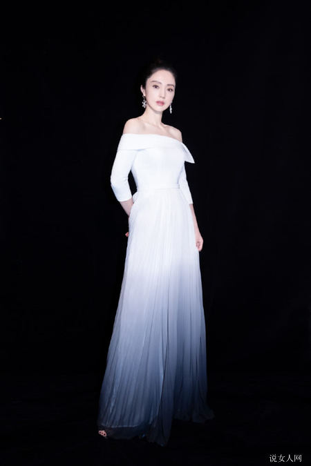 董璇身穿一字肩渐变色收腰裙,雅致精美好显气场,外露嫩白圆滑的露酥胸和美背,也是引人注意性感迷人,荷叶袖的样式,刻画腰肢,显高又显瘦,增加妩媚动人的气场,渐变色的色彩,娇媚温文尔雅,释放微微造型艺术腔调。