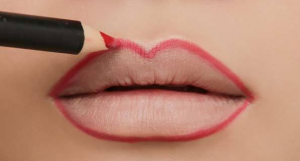 有些妹子的嘴巴薄,所以就想要自己的嘴唇看起来丰满一些,那么可以选择一支跟自己唇部的颜色差不多的唇线笔,然后再勾勒出唇部的轮廓。先在唇部的上方画一条线,记得要根据轮廓来画哦,然后画到嘴巴边角的地方。