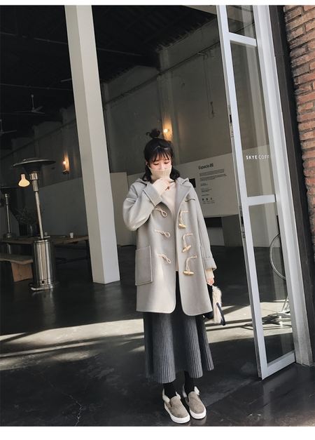 较为优美的女生能够穿牛角扣大衣搭配半身裙,不但结构类型能够打造出质感,还能给你藏起多肉哦。