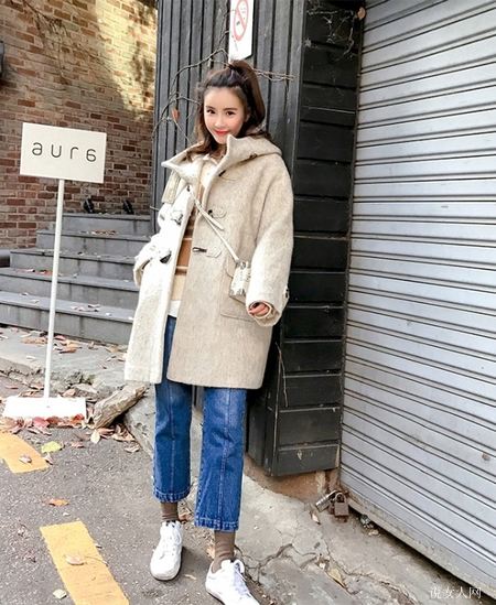 牛角扣大衣配牛仔裤子都是非常好的挑选,由于牛仔裤子具备与众不同的休闲娱乐丹宁风,搭配大衣来穿不但能摆脱了大衣的低沉和严肃认真感,还未满身造型设计引入了洒脱潇洒的街边韵味。