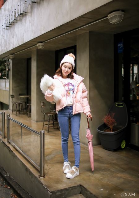 粉色始终是女性最不想要舍弃的色调,因此不管哪些时节,我们能见到粉色的品类。它既能够雅致,还可以柔美,能够气场,也可以营造烂漫。那么冬季,粉色面包服配哪些牛仔裤子漂亮又时尚潮流呢?