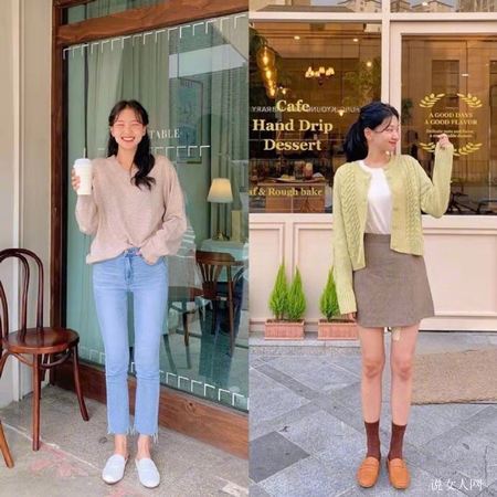 驼色的毛衣搭配上短牛仔裤,全部人看上去极其的溫柔,牛仔裤子的深蓝色是那类较为浅的深蓝色,一样给人一种柔和舒服的感觉。