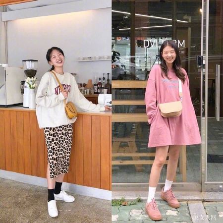 白色的阔型连帽卫衣加上豹纹的紧身裙,有一种配搭的感觉,十分chic,连帽卫衣嫩白晶莹剔透,看起来休闲娱乐又简洁。搭配上狂野随意的豹纹,造成了一加一超过二的实际效果。