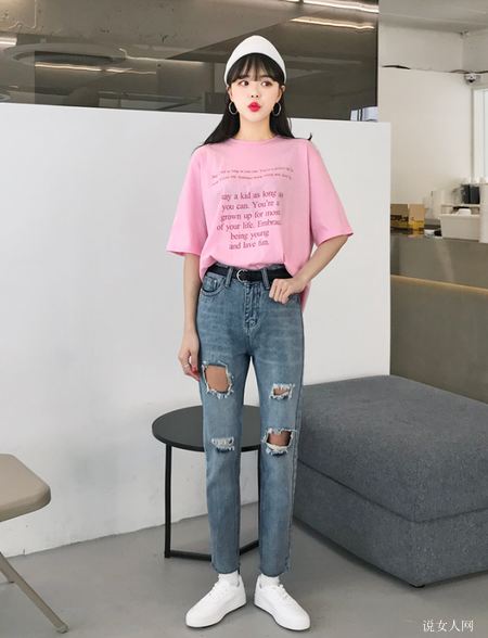 牛仔裤子应当每一女孩常有吧,无论一年四季常有它的背影~挑选一条溥款的牛仔裤子搭配比较宽松短袖在夏天是十分非常好的挑选哟~看上去时尚潮流休闲。假如怕显能够 把衣服裤子衣摆放到裤子里~秒变修长美腿~