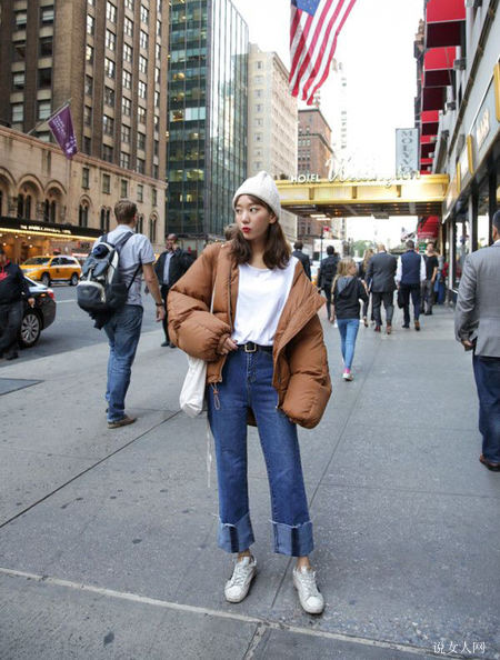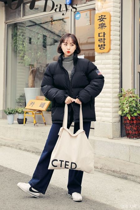 很多女孩穿短装面包服的那时候,会挑选搭配紧身的裤子来打造出上宽下窄的廓型,会较为显高显瘦。可是,要想穿的时髦个性化得话,短装面包服还是搭配阔腿裤更显干净利索哦。短装面包服能提高波导线,让下半身看上去占比更纤长,下穿着阔腿裤得话还能显得很有气质。