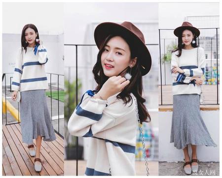 打底衣+半身长裙