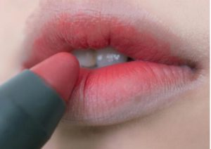 其次:先从嘴巴中心地方里侧逐渐开始擦抹口红,由内向外,由深到浅的慢慢晕开后再应用口红擦抹唇中心地方,加重嘴唇内轮廊。这一技巧尽管非常像咬唇妆的画法,但它由深至浅的衔接色不容易像咬唇妆显著。
